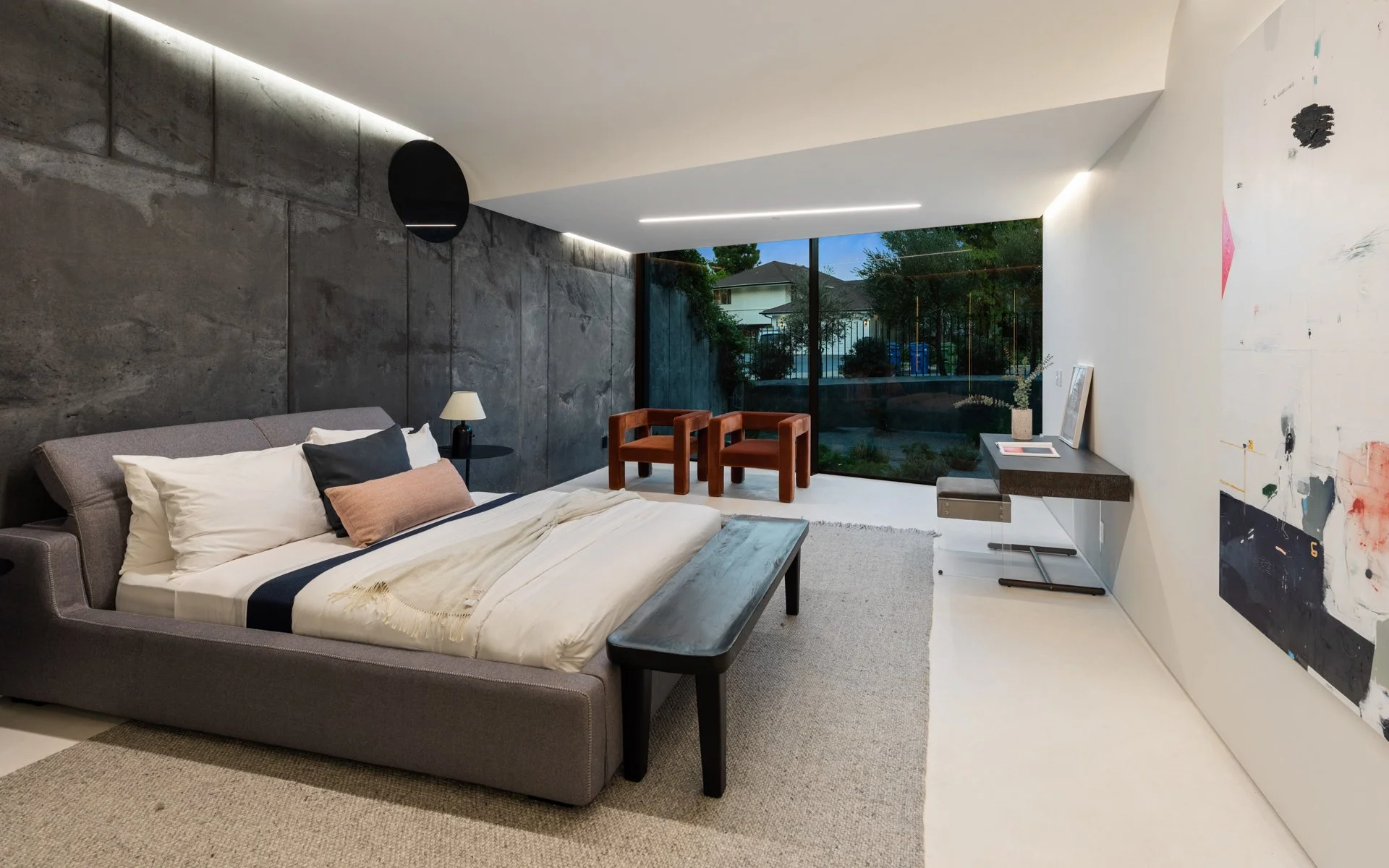 This stunning property includes 4 bedrooms and 4.5 bathrooms. The lower level features a living room with fireplace and 15 feet high ceilings, family room, and guest bedroom or office with an en suite bath. There are two additional bedrooms that are equipped with glass closets and separate private en suite baths with Graff luxury fixtures, wall-hung Catalano toilets, and imported tile work.